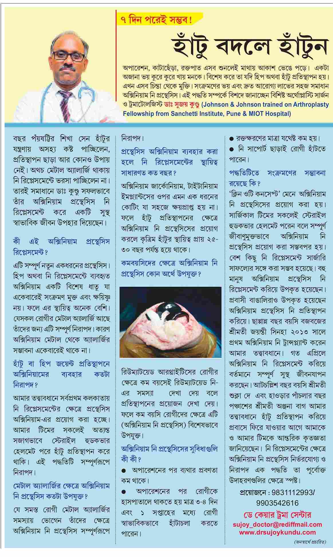 Institute, Pune, India. He also completed the advance Arthoplasty training from Bangkok Depuy